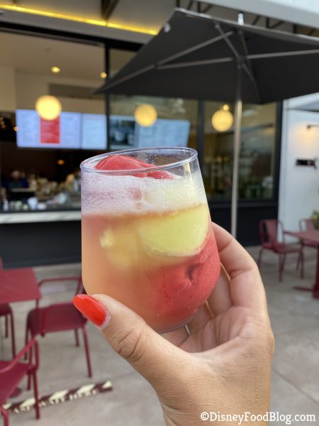 Overall, we thought this was a delight! The light flavors mixed with Prosecco make for a very refreshing treat. We would definitely recommend grabbing a spoon to eat/drink this one. This was a delicious way to consume sorbet and alcohol! We will continue to keep you updated on the latest treats we find around Walt Disney World!