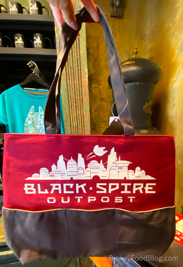 We’re always keeping our eyes out for sales, and we found one in Star Wars: Galaxy’s Edge! This Black Spire Outpost Tote is usually $34.99, but it’s currently on sale for $24.99. It’s just what we need for carrying around all the Star Wars merch we’ve bought!