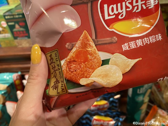 Even though there are SO many delicious eats with the EPCOT Food & Wine Festival, we think it’s worth it to check out the snacks in the gift shops around World Showcase. When we saw Salted Yolk Rice Dumpling flavored chips, we were intrigued!