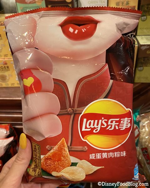 We LOVE The House of Good Fortune at the China Pavilion because we always find unique potato chip flavors there, like fried crab chips! And this time, we found Lay’s Salted Yolk Rice Dumplings, which came in a really cool bag.