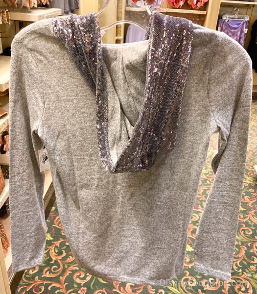 This Heather Gray Sequin Hooded Shirt for $49.99 seems pretty tame on the front with the Walt Disney World logo on it.
