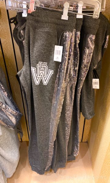 But you’re going to need pants, too, right? So why not match all that sparkle on top with some shine on the bottom? These Dark Gray Sequin Lounge Pants feature a sequined stripe that runs up the outside of each leg, with the Walt Disney World logo on the front of one side. The pants are $44.99.