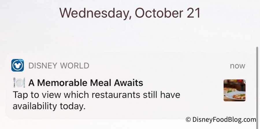 It looks like guests can now receive a push notification about day-of dining reservation availability for table service restaurants!
