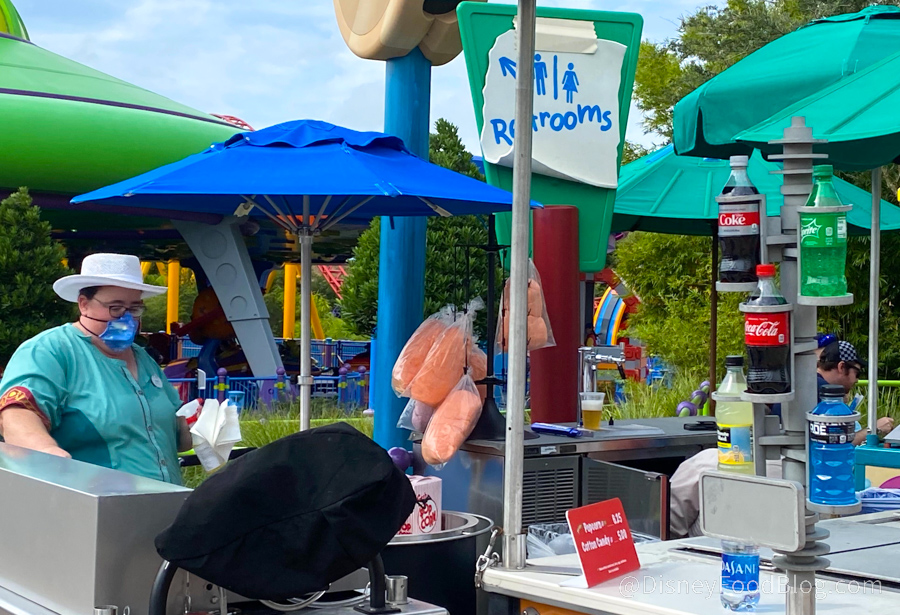 We finally saw the Halloween Cotton Candy in Toy Story Land. We’ve seen regular cotton candy here, but this is the first time the Halloween version has popped up.