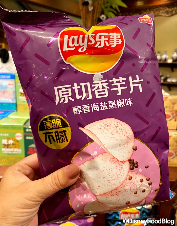 We’ve found a TON of interesting potato chips at EPCOT lately, and now the House of Good Fortune shop in the China pavilion has Lays Taro Chips!
