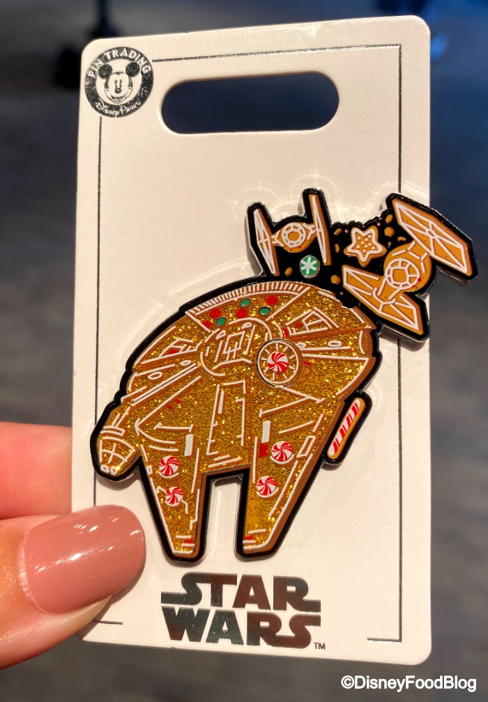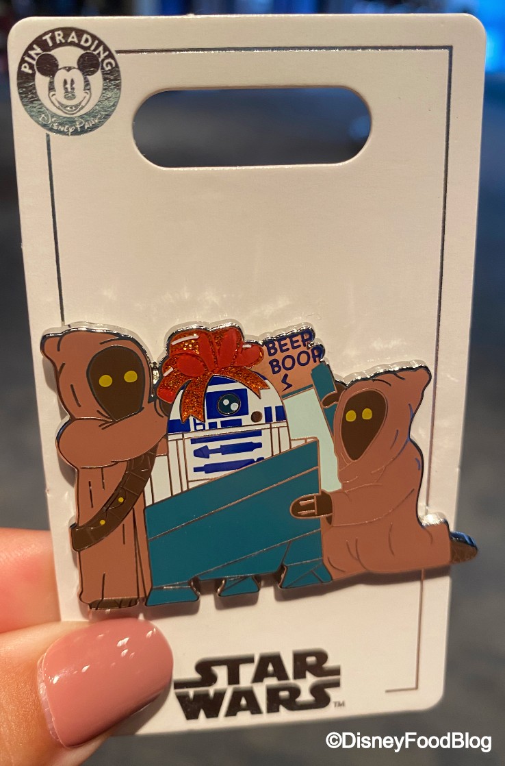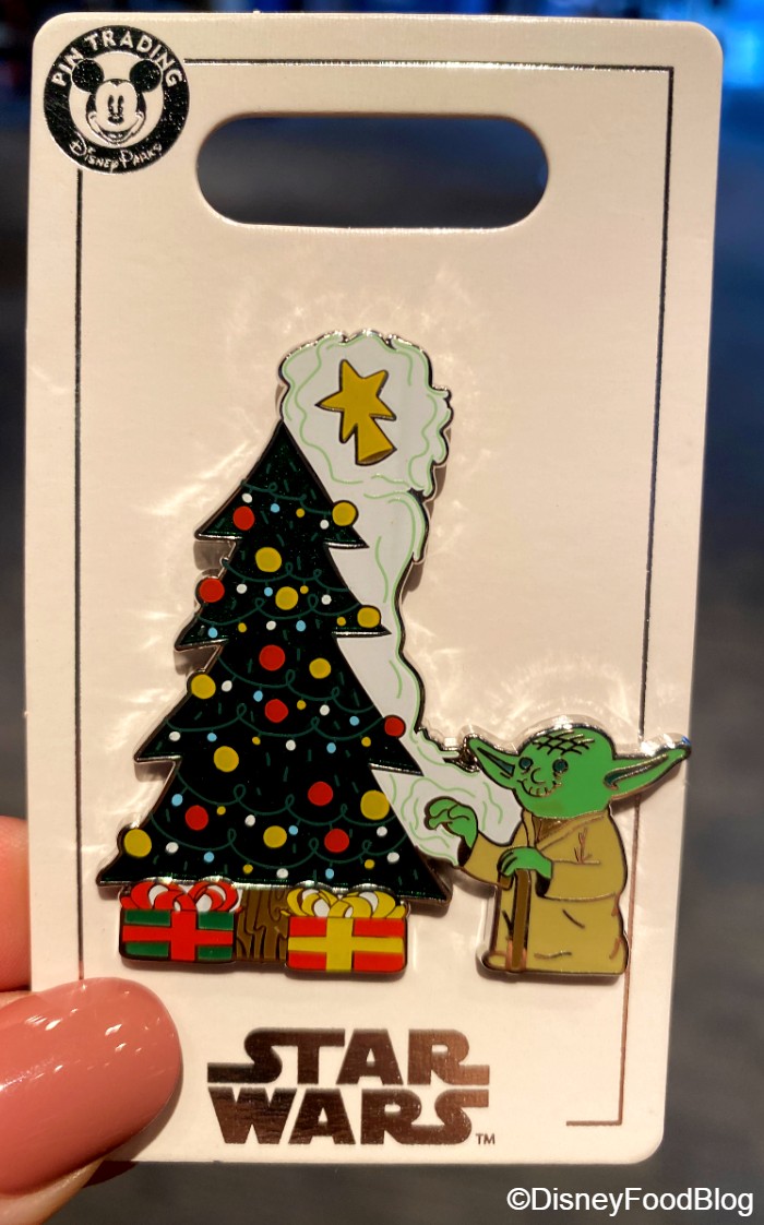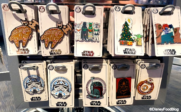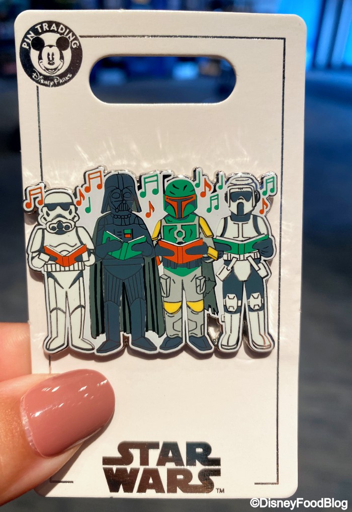 Christmas has reached another galaxy — the Star Wars galaxy! We spotted some festive Star Wars pins at the Test Track Simporium in Future World!