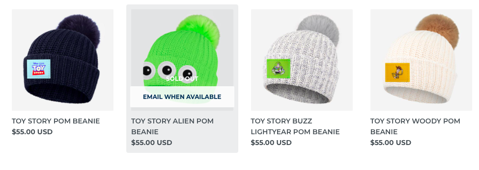 …and less than 20 left of the Buzz Lightyear Pom Beanie!