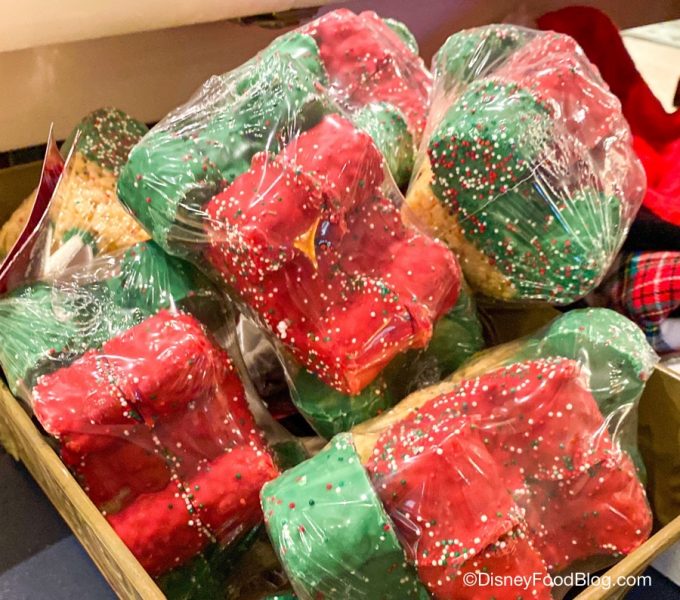 At the Market at Ale and Compass over at the Yacht Club Resort, we spotted the bundle of festive Rice Krispies! We’ve seen this treat around Disney World in previous years, but now they are back for 2020.