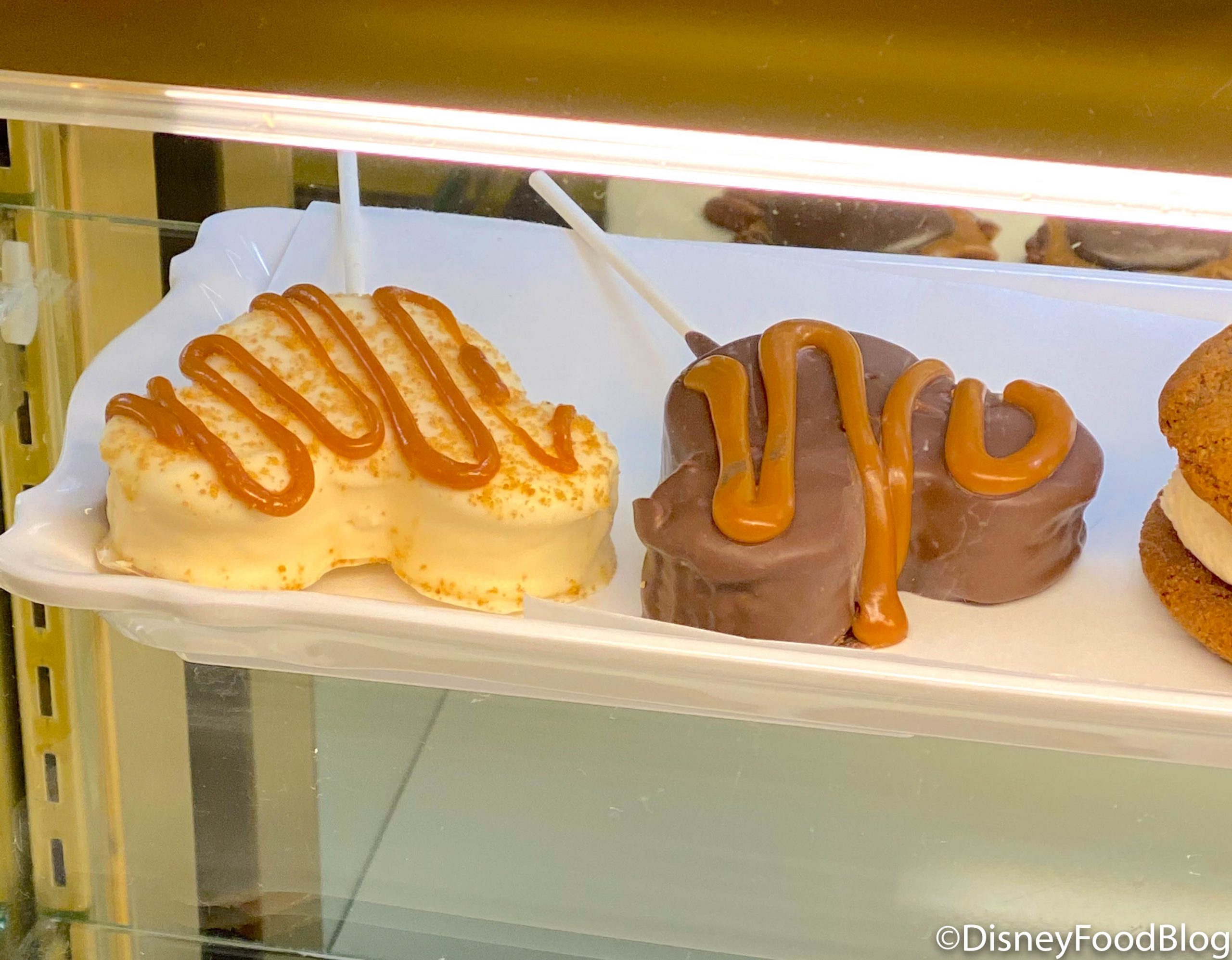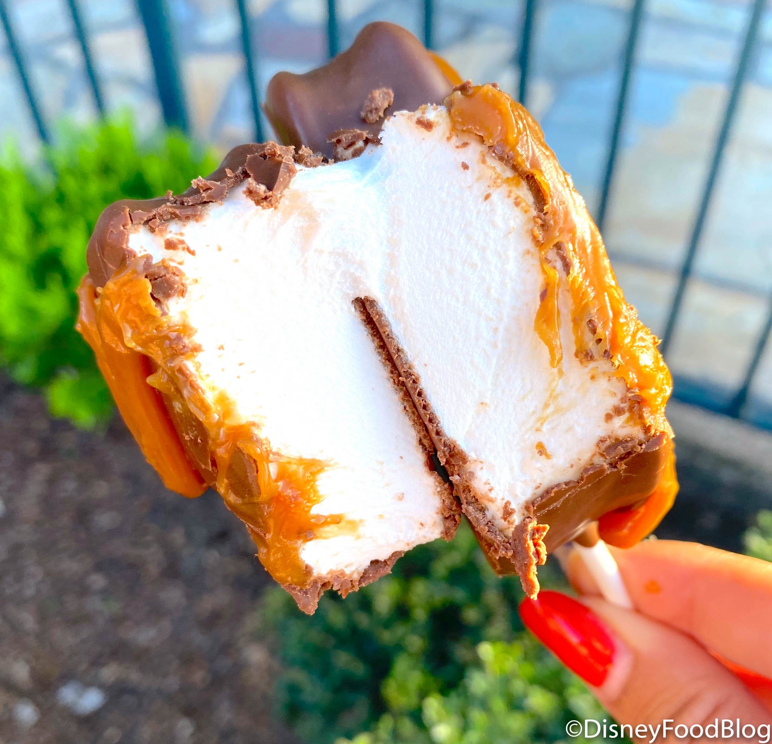 You have a choice between white chocolate and milk chocolate (and you can guess which one we went with during our visit). Usually, we wouldn’t list Marshmallow Wands as our top pick of our Disney snack list, but these guys are DIFFERENT. The salty and sweet caramel on the outside and inside paired with the fluffy marshmallow and a dip in milk chocolate made us melt.