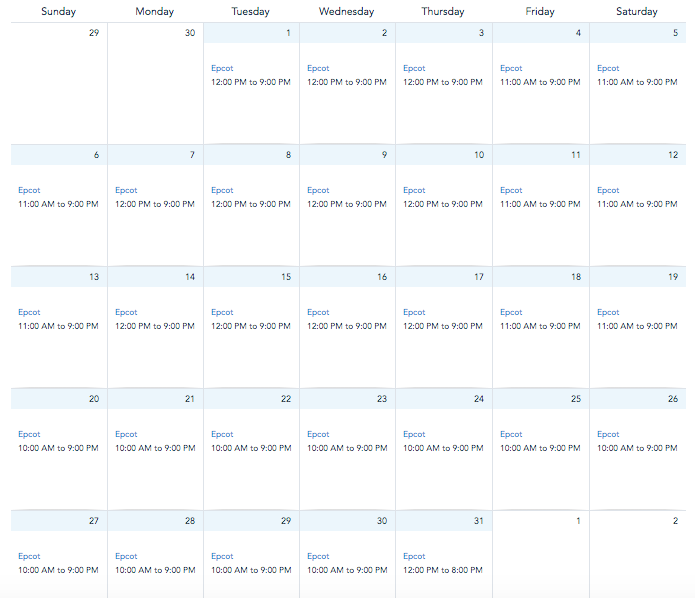 The operating hours for EPCOT have been extended from the previously announced 12PM-8PM to 10AM-9PM on December 20th-December 30th.