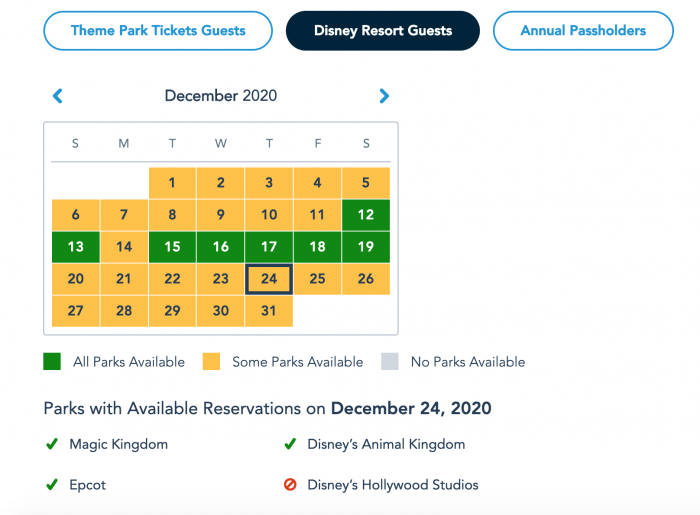 Disney Park Passes have been selling out quicker than we can eat a batch of gingerbread during the upcoming holiday season. We’ve seen availability disappear for Halloween, Thanksgiving, Christmas Day, and New Year’s! And, now Christmas Eve is joining the list! Disney’s Hollywood Studios has sold out on December 24th for theme park tickets guests…