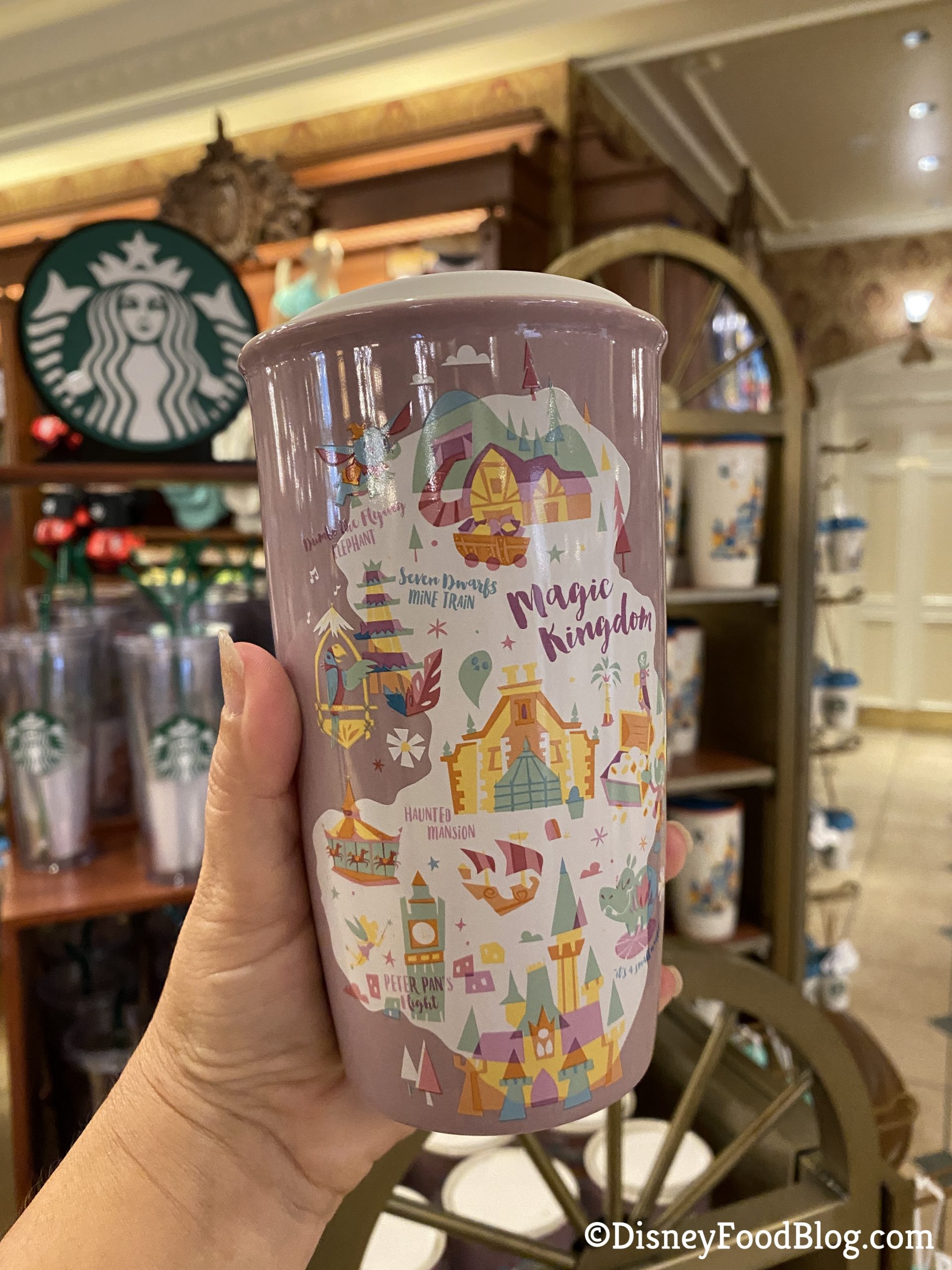 To go along with it, Disney added the Magic Kingdom design to a mini Starbucks Travel Mug Ornament! If you are a collector of these coffee cup ornaments, you’ll want to add this one to your collection. This can be yours for $14.99.