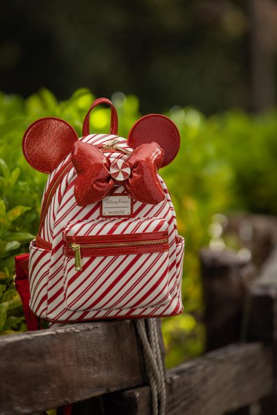 The Loungefly Minnie Mouse Peppermint Mini Backpack is completely new, though! It’s got Minnie ears and her signature bow, complete with a peppermint candy embellishment!