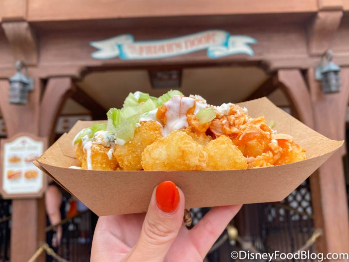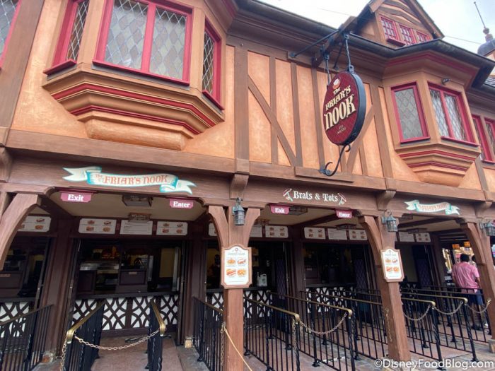 Like many restaurants in Disney World, Friar’s Nook was closed for a LONG time. In fact, the quick-service spot only reopened for the first time a few days ago, and thank GOODNESS, because we’ve had a tater tot-shaped void in our hearts for MONTHS!