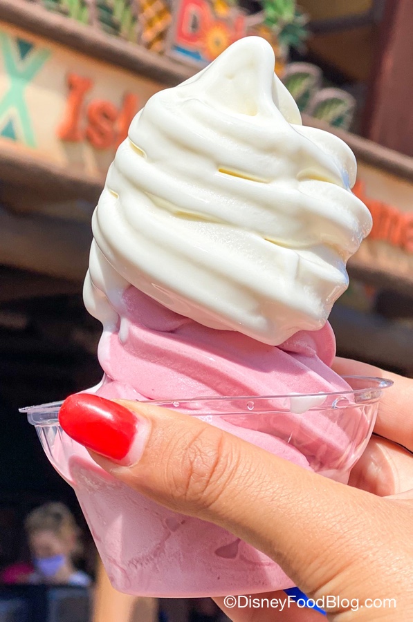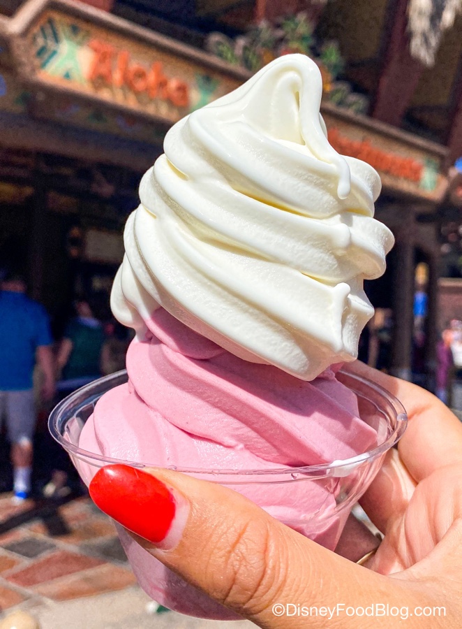 If you’re scratching your head, that’s because coconut is a newer soft serve flavor at Aloha Isle. And it doesn’t automatically come paired with raspberry! But we’ve never been ones to conform to Dole Whip norms… .