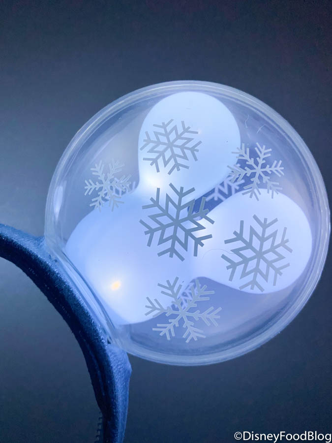 Of course, no holiday look would be truly complete without a set of themed Minnie or Mickey ears! We’ve already seen the peppermint and gingerbread ears, but we were only able to catch a glimpse at the Snowflake Mickey Balloon ears thanks to photos sent to us from an awesome DFB reader. But, today we found these elusive ears in a Disney World theme park and get a closer look!