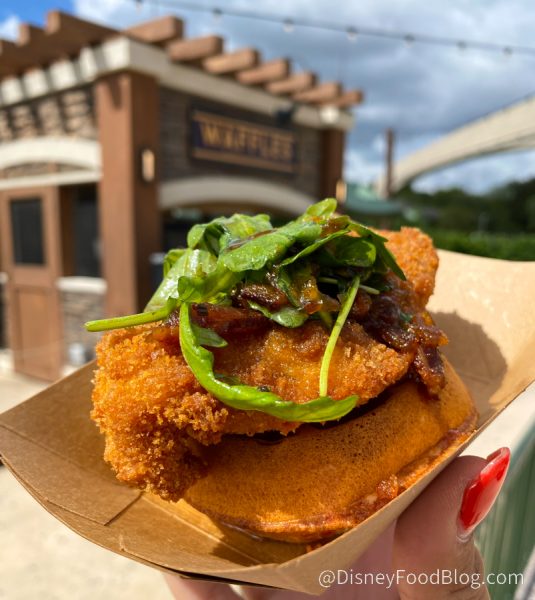 At the Waffles Booth, the berry waffle is now GONE, and both a Bananas Foster Waffle and Chicken and Waffle have been added to the menu!