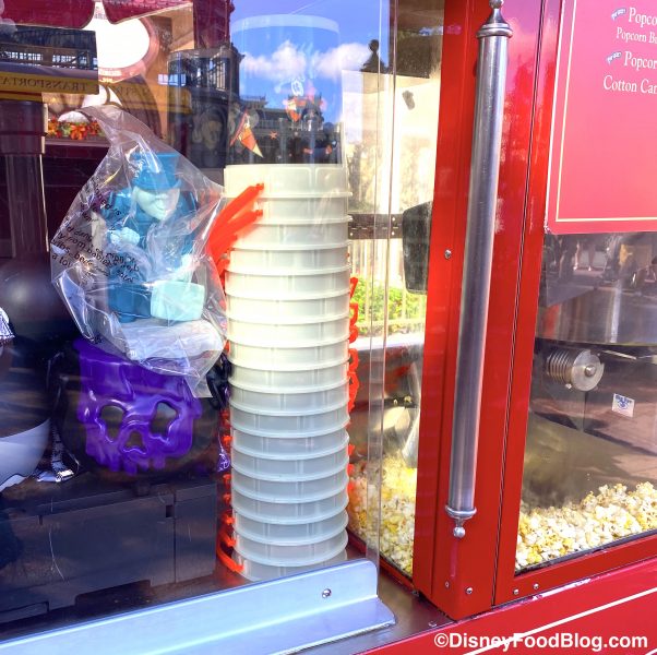 We also noticed that several of the popcorn carts throughout the park had the new glow-in-the-dark popcorn buckets available!
