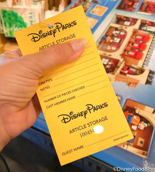 As another note, Cast Members let us do article storage when we bought our set at Discovery Trading Co. in Animal Kingdom. We spotted them testing this system at Windtraders a few months ago.
