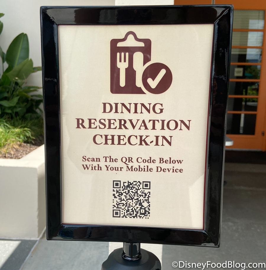 The new dining experience was very similar to what we experienced at other recently reopened restaurants like California Grill. Contactless menus are available via a QR code for your phone, tables are spaced out to create distance between guests, and you check into your reservation using a QR code with Disney’s Mobile Dine Check-In.
