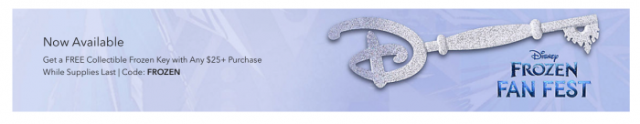 If you’re hoping to snag this key for yourself or the Frozen fan in your life, now you can! The Frozen Fan Fest key can be yours for FREE with any $25+ purchase on shopDisney! All you need to do to take advantage of this offer is use the code FROZEN when making your purchase.