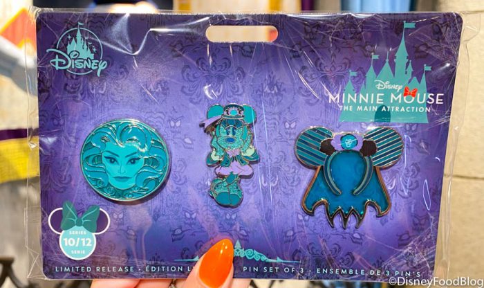 We also really liked the mug but unfortunately, it was sold out! 🙁 And last but not least is the Haunted Mansion pin set. The set comes with three pins. One that looks like the ears, a Leota pin, and a Minnie Mansion pin!