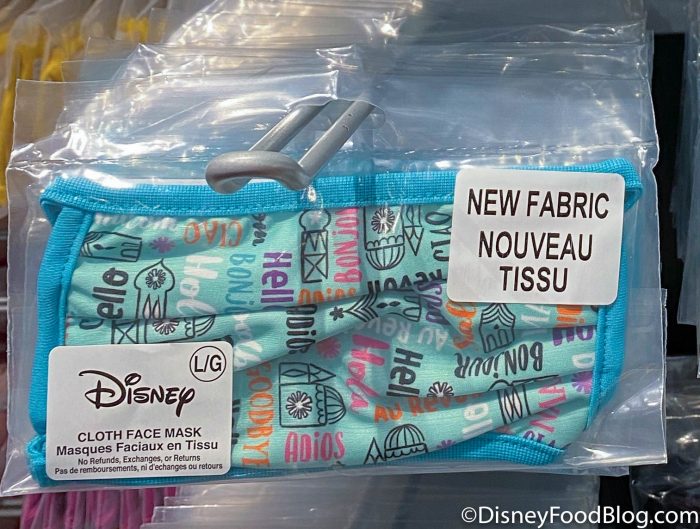 We also spotted this new-to-us Mask featuring some of the phrases you typically see at the end of “it’s a small world.” It’s different than the other Small World mask we’ve seen and features more words and designs covering the mask.