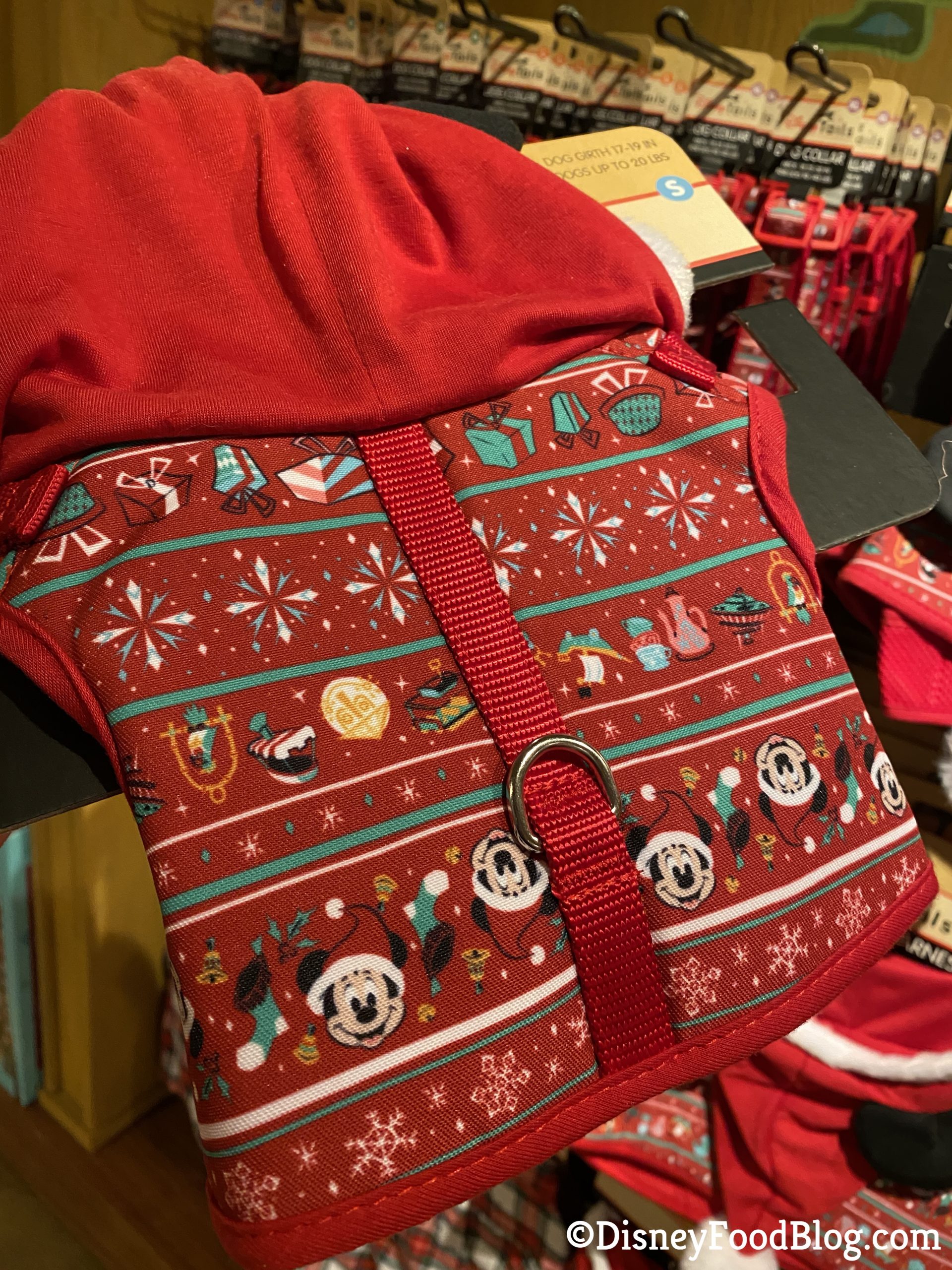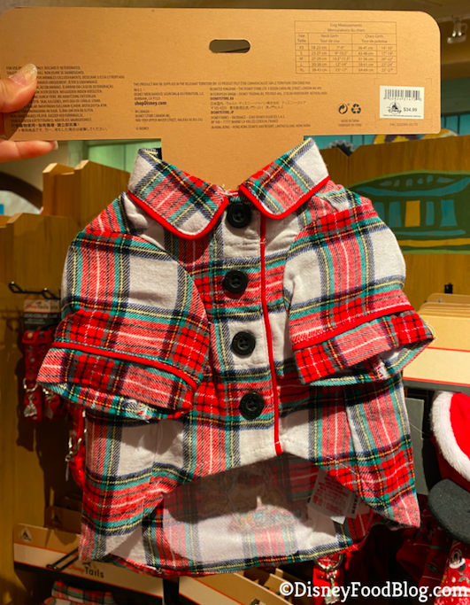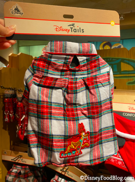 Over in Discovery Trading Co. at Disney’s Animal Kingdom, we spotted some ADORABLE outfits for your fur babies! First, we spotted the Holiday Dog Collar. These come in a variety of sizes to fit any doggo!