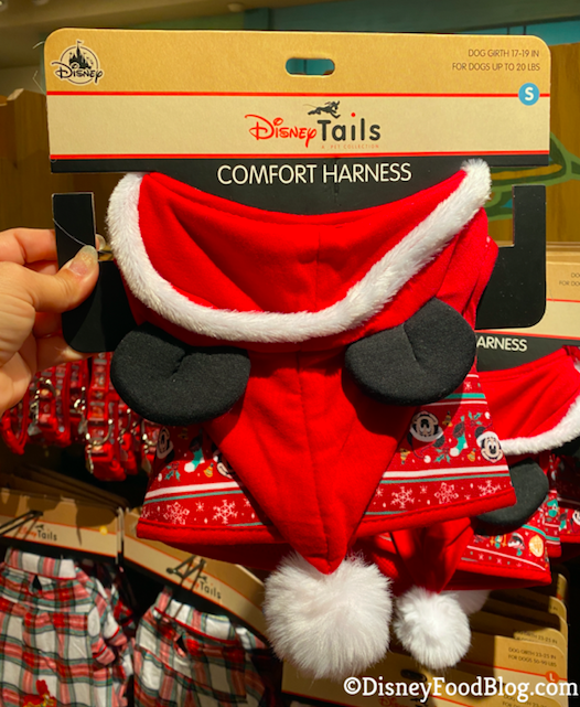 The design of the harness features Mickey in a Santa hat, snowflakes, gifts, and more! There is also a clip to attach a leash. This merry harness is sold for $39.99.