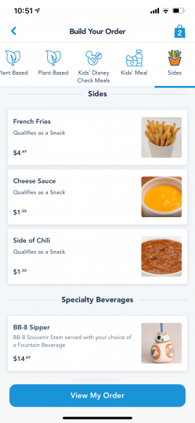 The chef here told us this is a brand new salad, although it’s based on the previous Fairfax Salad at Fairfax Fare. And y’all, this salad was yummy! It can be so hard to find a good salad at theme parks, but this one was almost perfect. We loved how the chips added a bit of crunch. The ingredients were super fresh. And the pork is super flavorful and the ranch gives it all a nice slight kick. It costs $10.99.