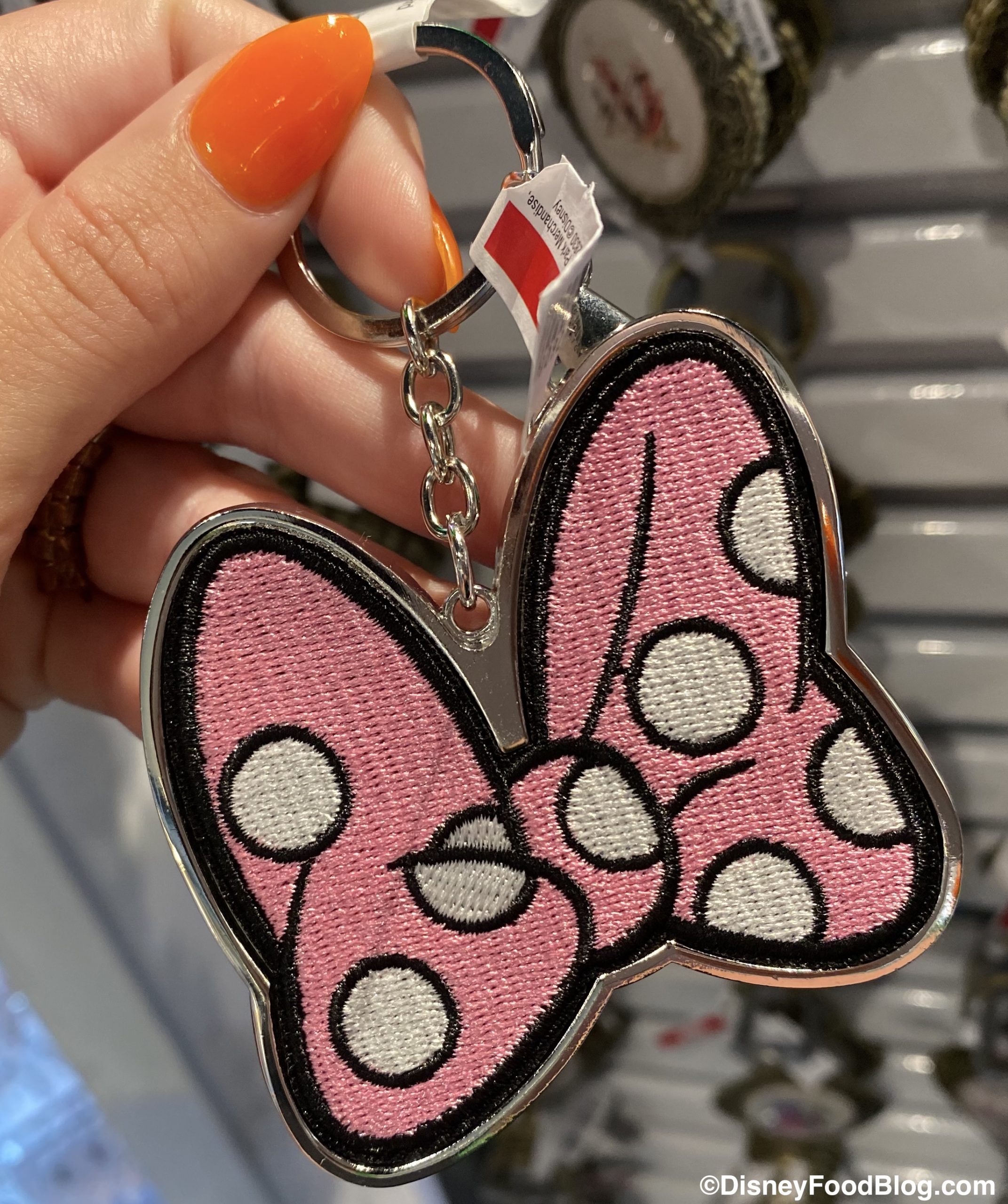 Speaking of embroidered details, we also spotted this precious Embroidered Minnie Keychain at Mickey’s Star Traders.