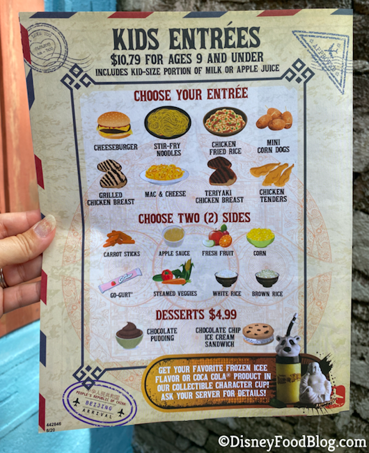 The kid’s menu, which includes an entree and two sides, has been increased by $1 to $10.79.