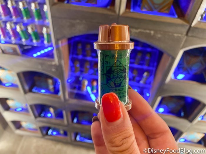 Well, Disney just upped the ante with a NEW way to customize your lightsaber and holocrons! The kyber crystal is the force behind any lightsaber and holocron. At Galaxy’s Edge, you can choose the color of your kyber crystal to fit your mood and display what side of the force you represent. Are you on the Dark Side or a Jedi fighting with the Resistance? You can represent your choice with kyber crystals. The crystals customize your lightsaber AND allow you to interact with a holocron!