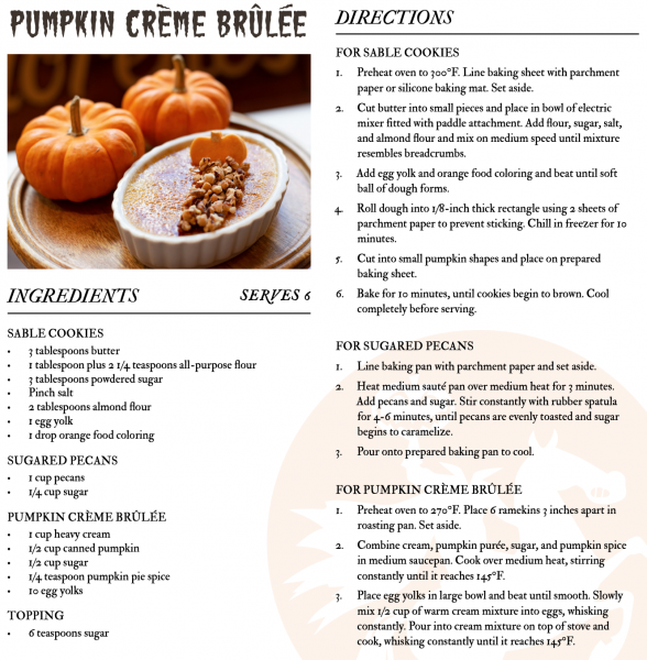 Make it a full three-course pumpkin meal by wrapping up with the Pumpkin Creme Brulee. Yes, you heard us. YUM.