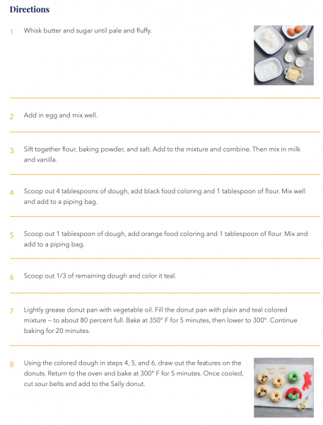 This recipe will teach you how to craft a Jack Skellington Donut, a Zero Donut, and a Sally Donut.