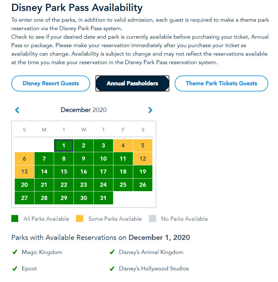 Keep in mind that we’ve seen these situations change: Disney often releases more park passes for specific days. So our best advice is to keep checking if you’re looking to visit the parks in December. And as always, we’ll keep checking, too, and let you know when availability changes!