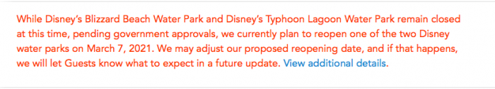 But, fans of lazy rivers and water slides, rejoice! Disney announced they plan to reopen ONE of the two Disney water parks on March 7, 2021!