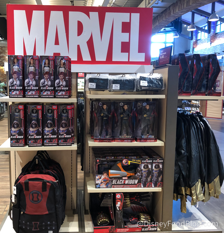 World of Disney had SO much Black Widow merch! We have seen a lot of this merchandise elsewhere, but it’s nice to see her getting represented at Disney Springs, too! We spotted loads of action figures, masks, bags, and clothing.