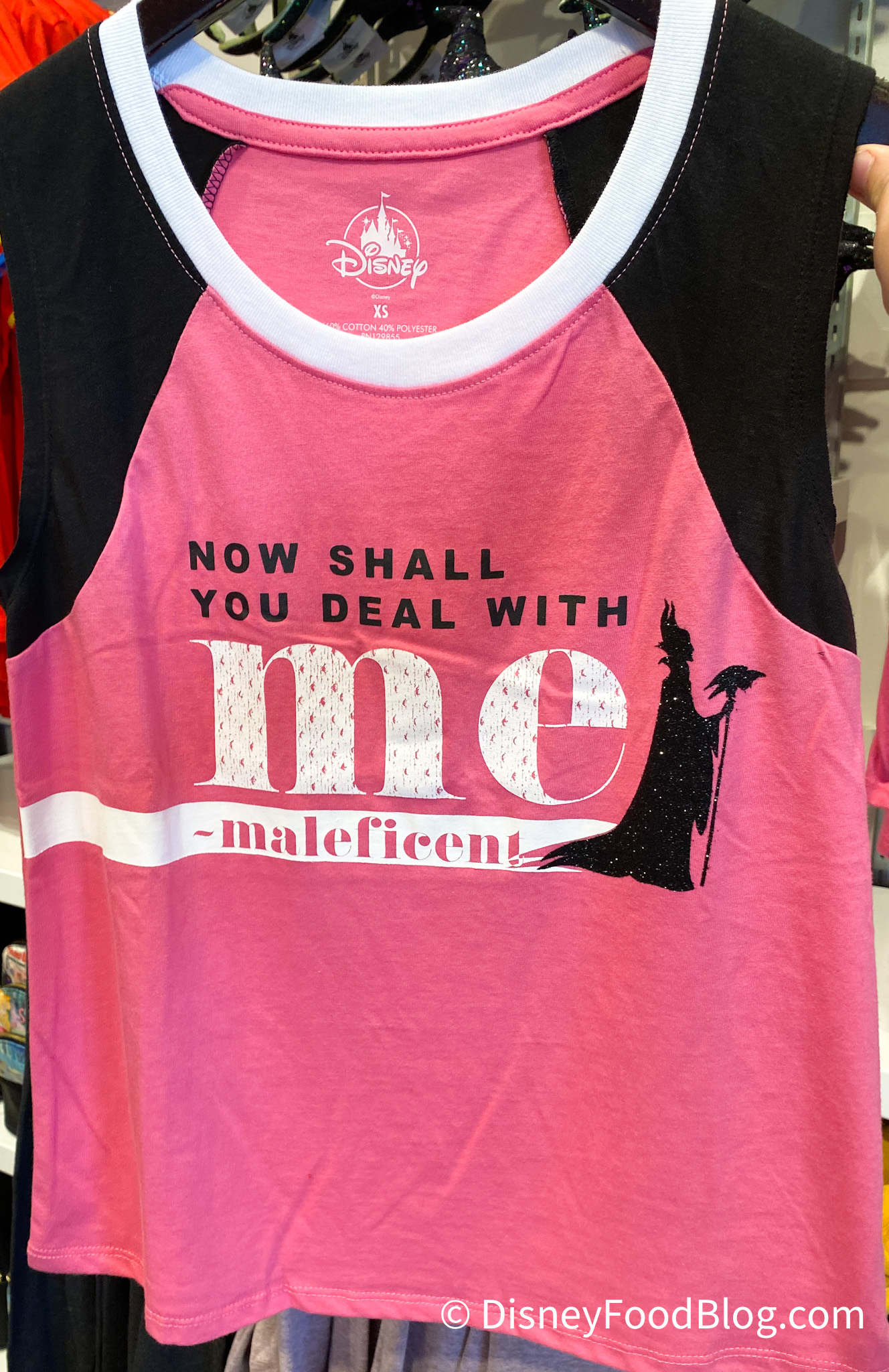 If Sleeping Beauty is more your cup of tea, we also found a couple of tops to add to your wardrobe! This Maleficent tank made us scratch our heads (It’s “Now you shall deal with me,” right? Not “Now shall you deal with me”?). The tank top is currently available at the Dress Shop for $34.99.