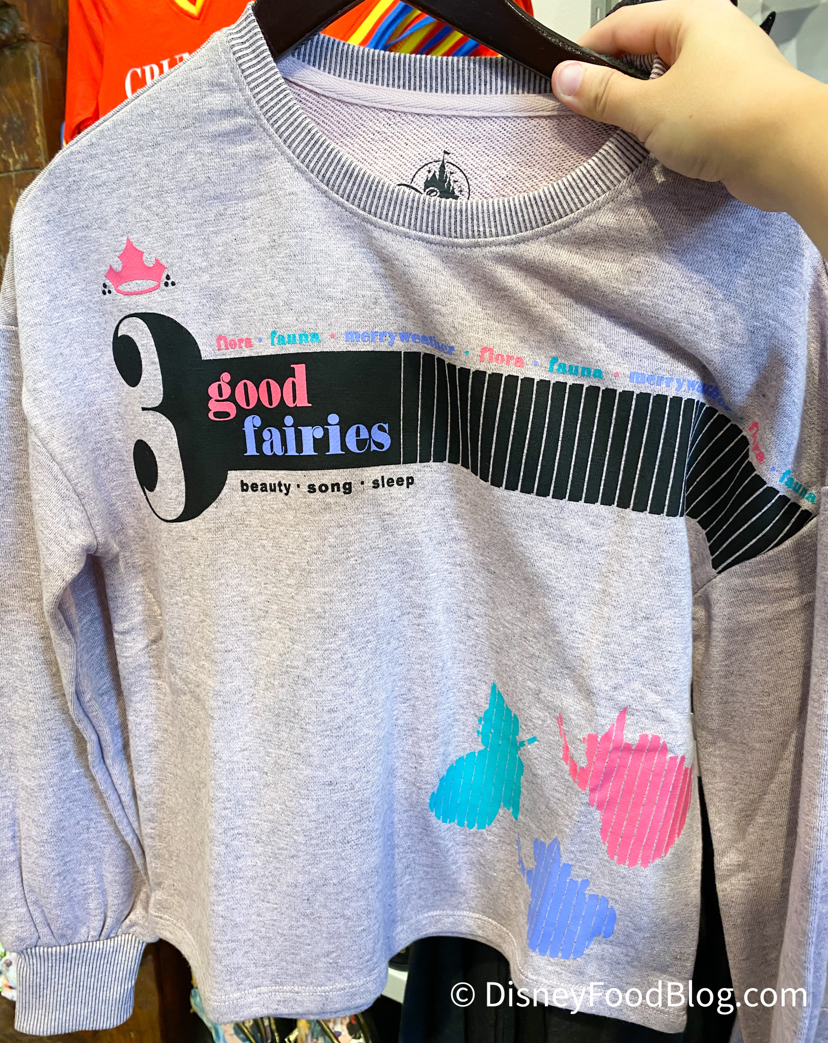 If that’s all too confusing, you can layer it with this sweatshirt featuring the three fairies from Sleeping Beauty. The sweatshirt retails for $39.99.