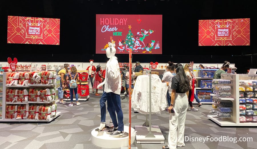 After we had our fill of World of Disney, we stopped by the new Studio 17 Backlot store, which is located in Studio 17 within the perimeter of Disney California Adventure. This extension of Downtown Disney is currently used for overflow traffic with the merchandise you can find throughout the other shops. So, we didn’t find too many unique merchandise items here! We did, however, see it transform into a Christmas wonderland!