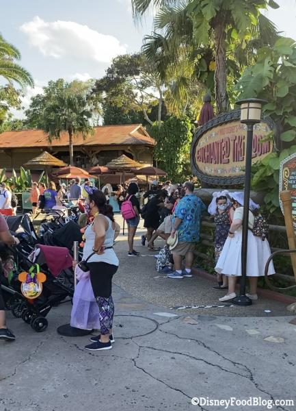 We later found out that there was a small fire in the kitchen of Pecos Bill Tall Tale Inn and Cafe! This caused both the Country Bear Jamboree and the Tiki Room to be evacuated. The fire at the restaurant was not visible to any guests, a Cast Member told us that was the reason for the evacuation and the long line at the Tiki Room.