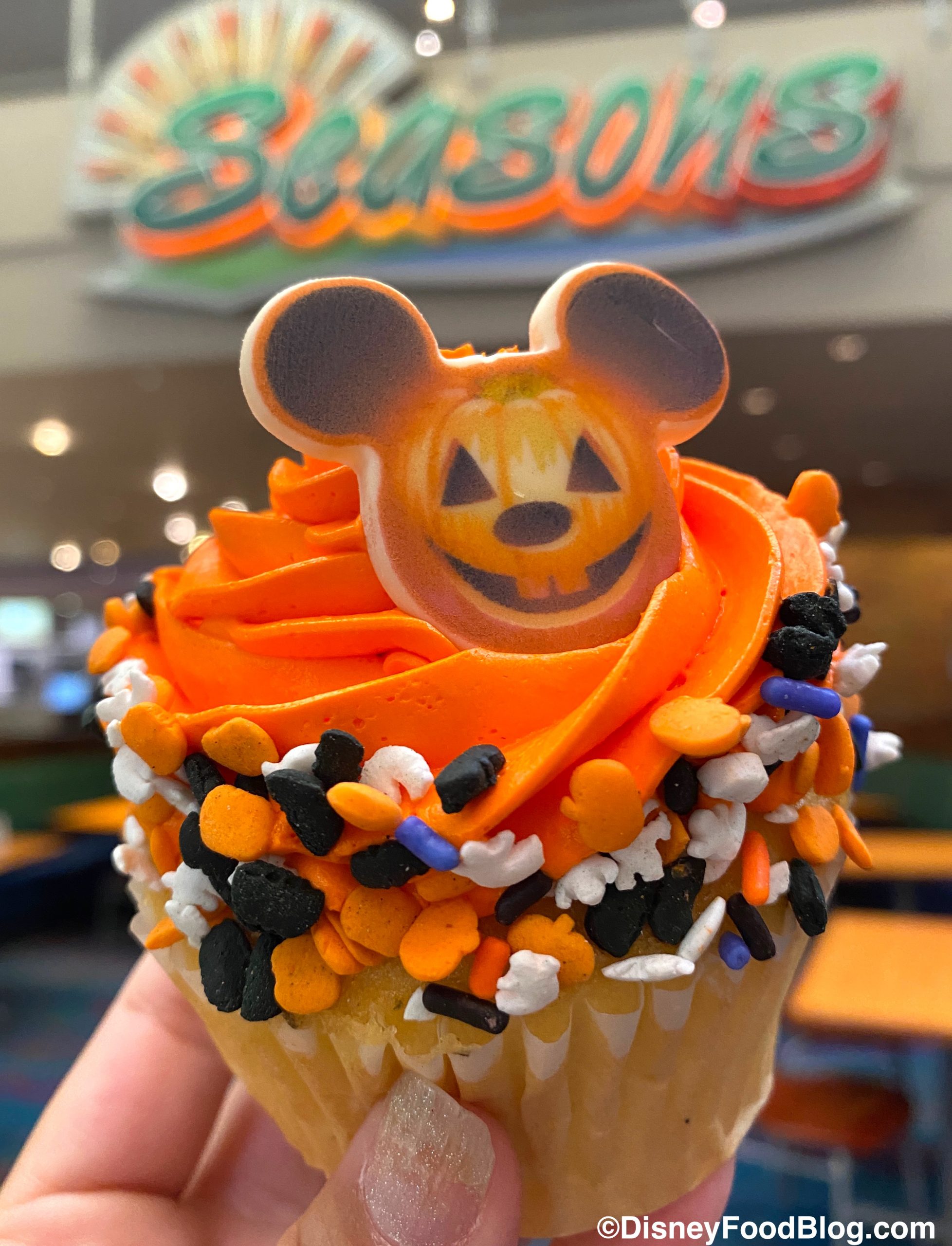 While searching for treats around EPCOT, we found the Halloween Cupcake at Sunshine Seasons in The Land pavilion!
