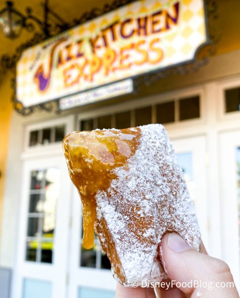 We heard that Jazz Kitchen Express was serving up some seasonal dipping sauces to accompany their iconic beignets, so we hurried on over to Downtown Disney to try them for ourselves!