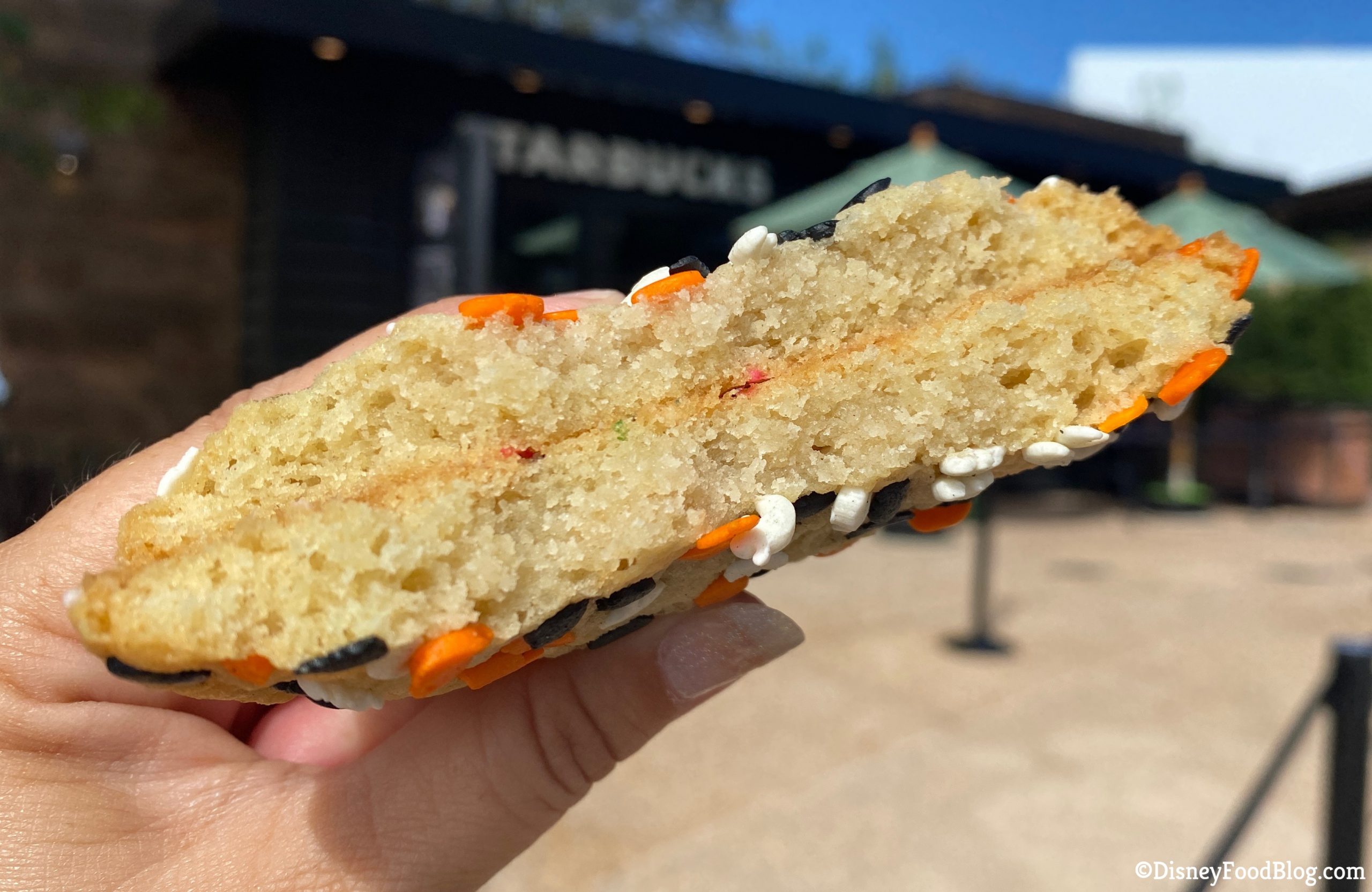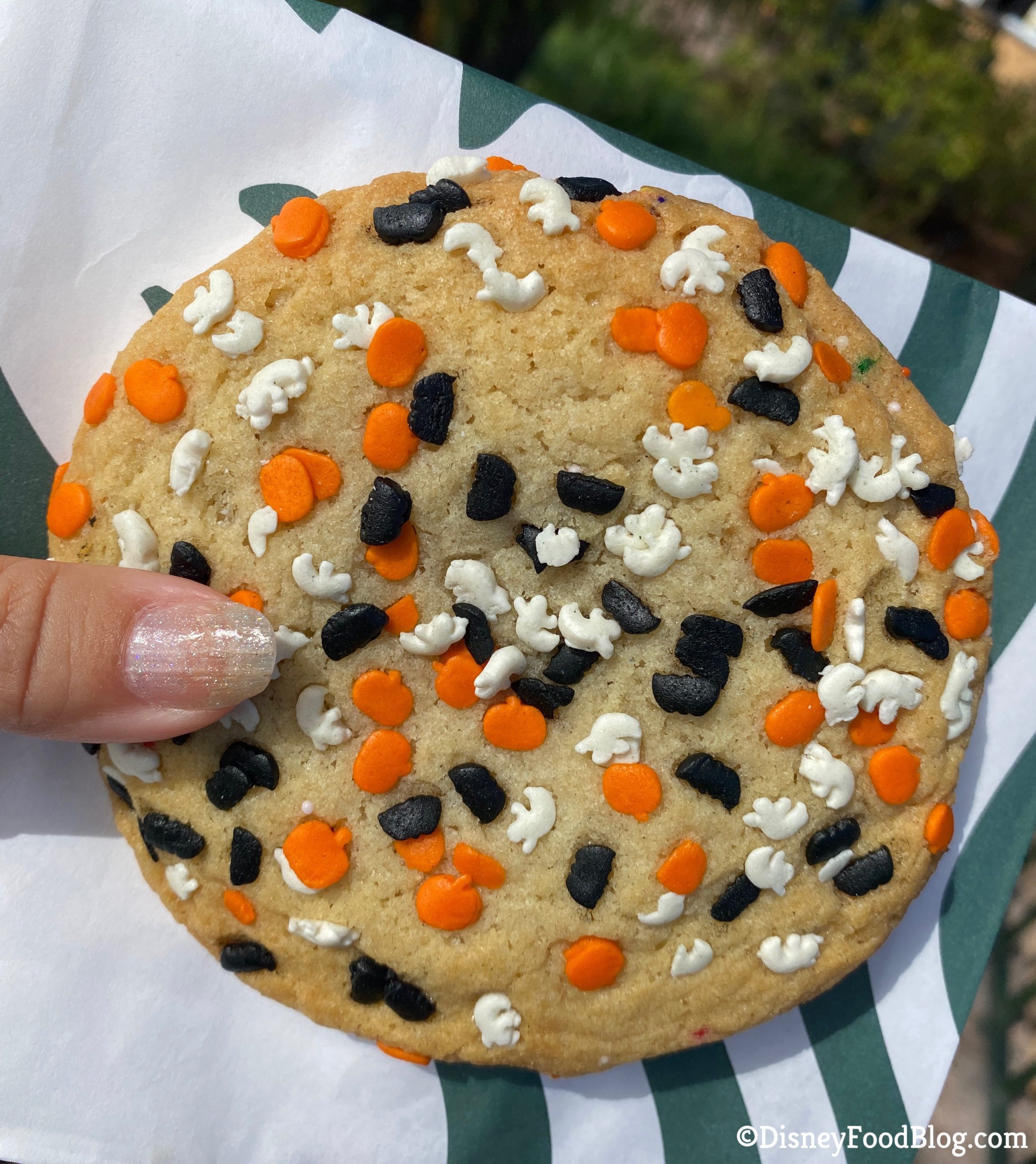 Well, this cookie did not disappoint. We thought it was a very nice, chewy sugar cookie and although it is fairly plain, this cookie was BIG. You could definitely share between your group especially if you want to snack your way around EPCOT. This cookie was not lacking on the sprinkles, and we noticed that this is the same sugar cookie Starbucks usually sells, just with Halloween sprinkles instead of clear sprinkles.