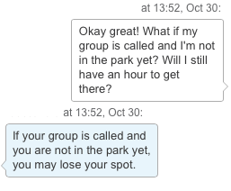 We also asked another Cast Member specifically whether we’d be able to sign up for a Boarding Group from a place about 15 minutes away from the park and the Cast Member we chatted with said we would be able to sign up from that location.
