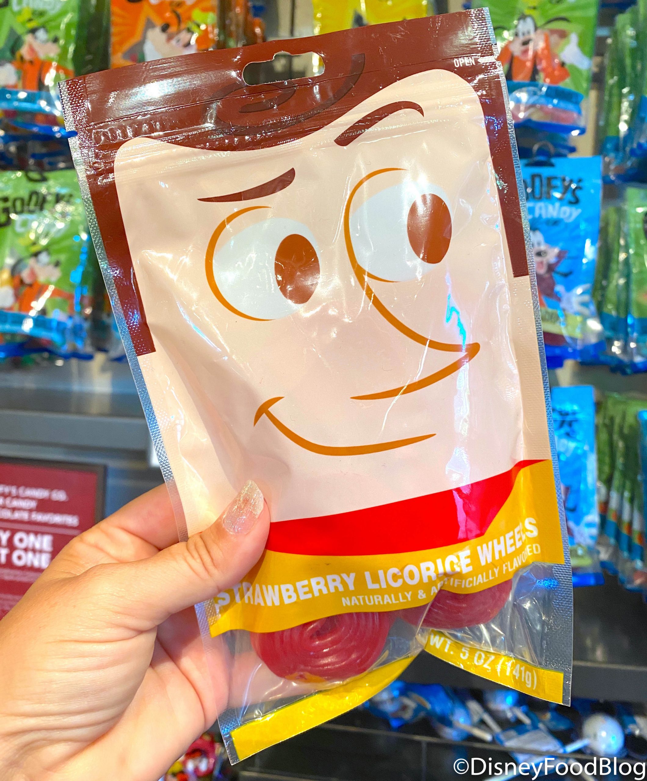 Along with Goofy’s Candy Co. snacks and “chocolate favorites,” now you can treat yo’self to Woody’s Strawberry Licorice Wheels…