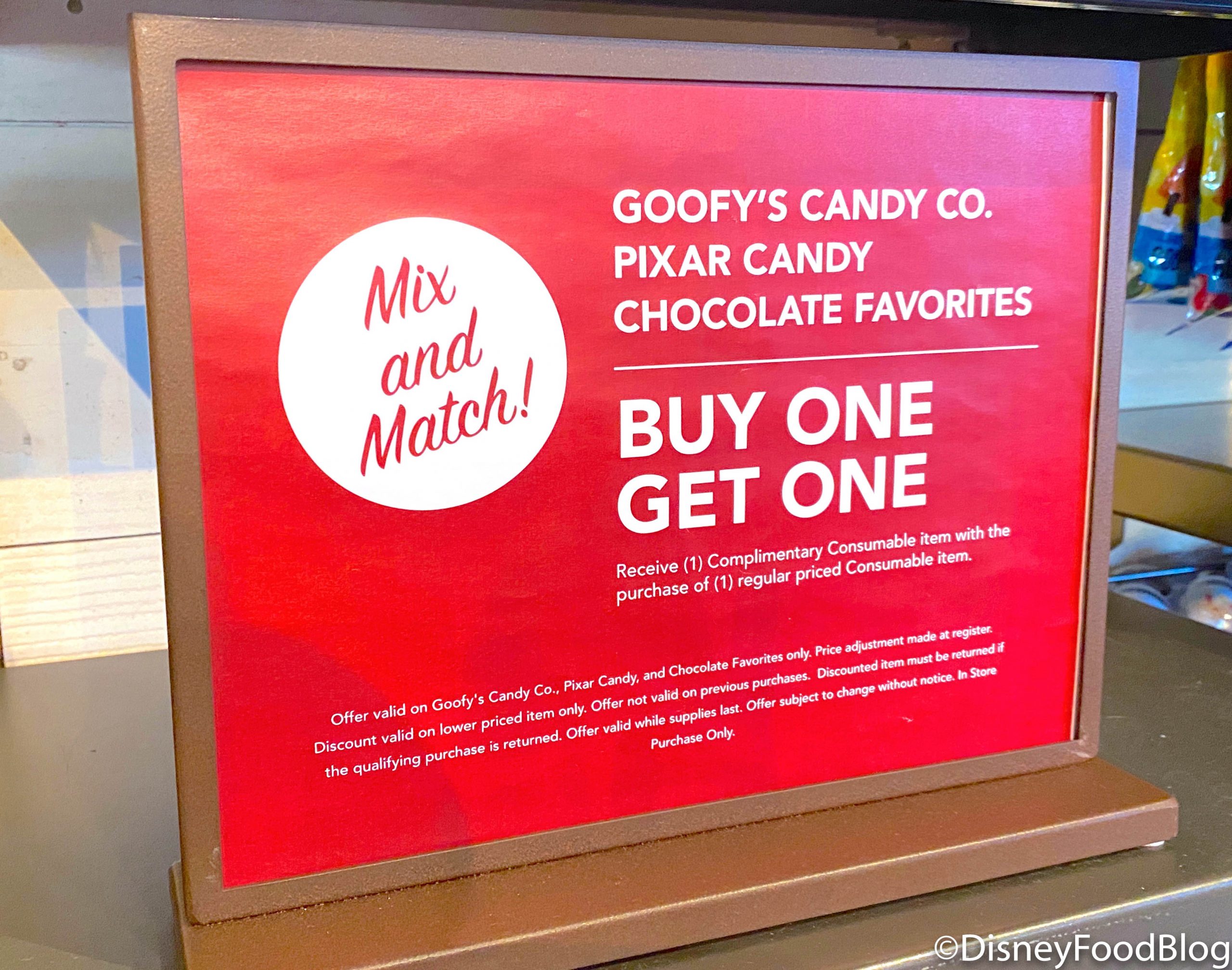 While we were hopping around Disney World, we noticed that the Pixar bags of sweets are now a part of a BOGO candy deal!