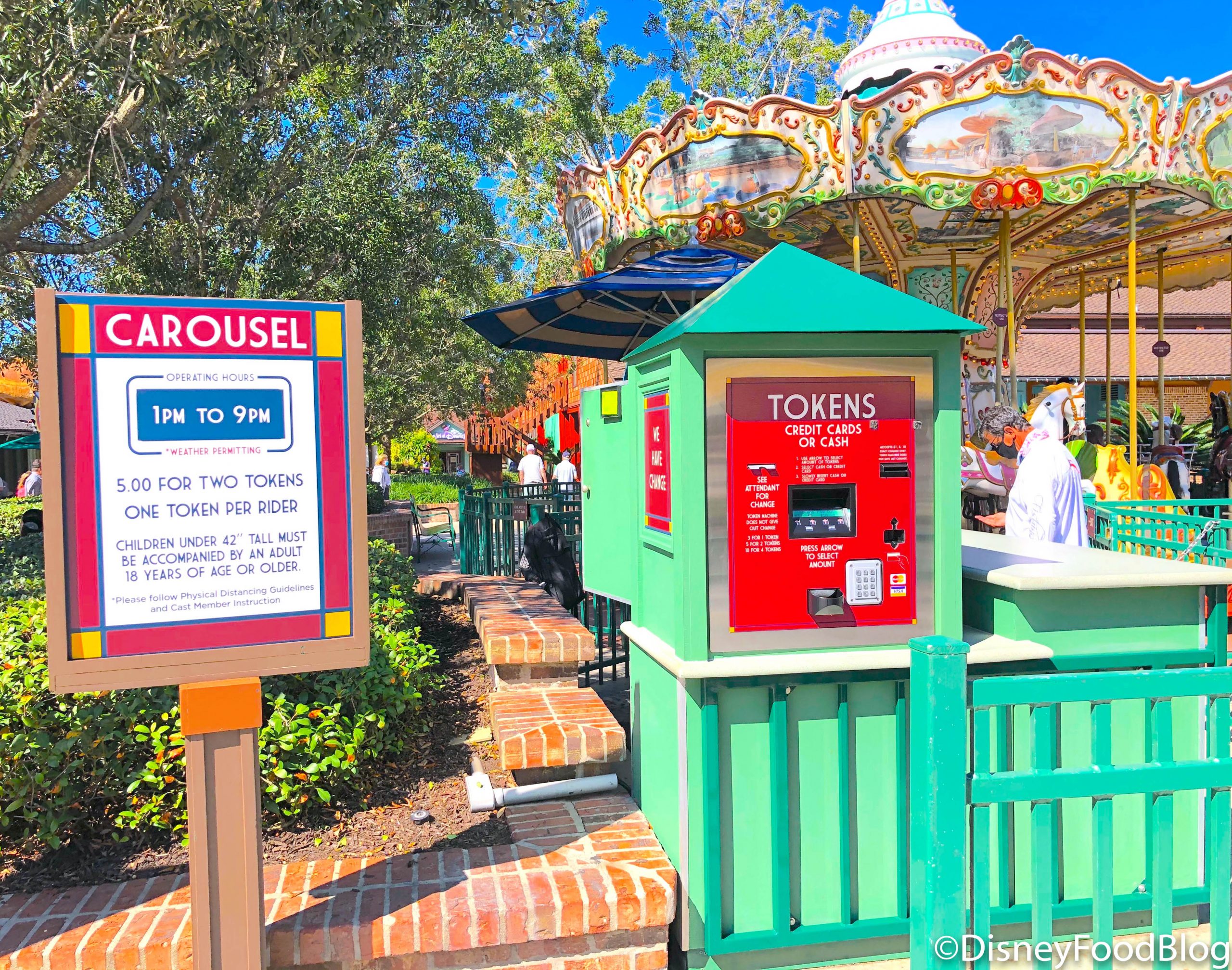 The carousel is now open from 1PM until 9PM and costs one token per rider (two tokens cost $5 at a nearby machine).
