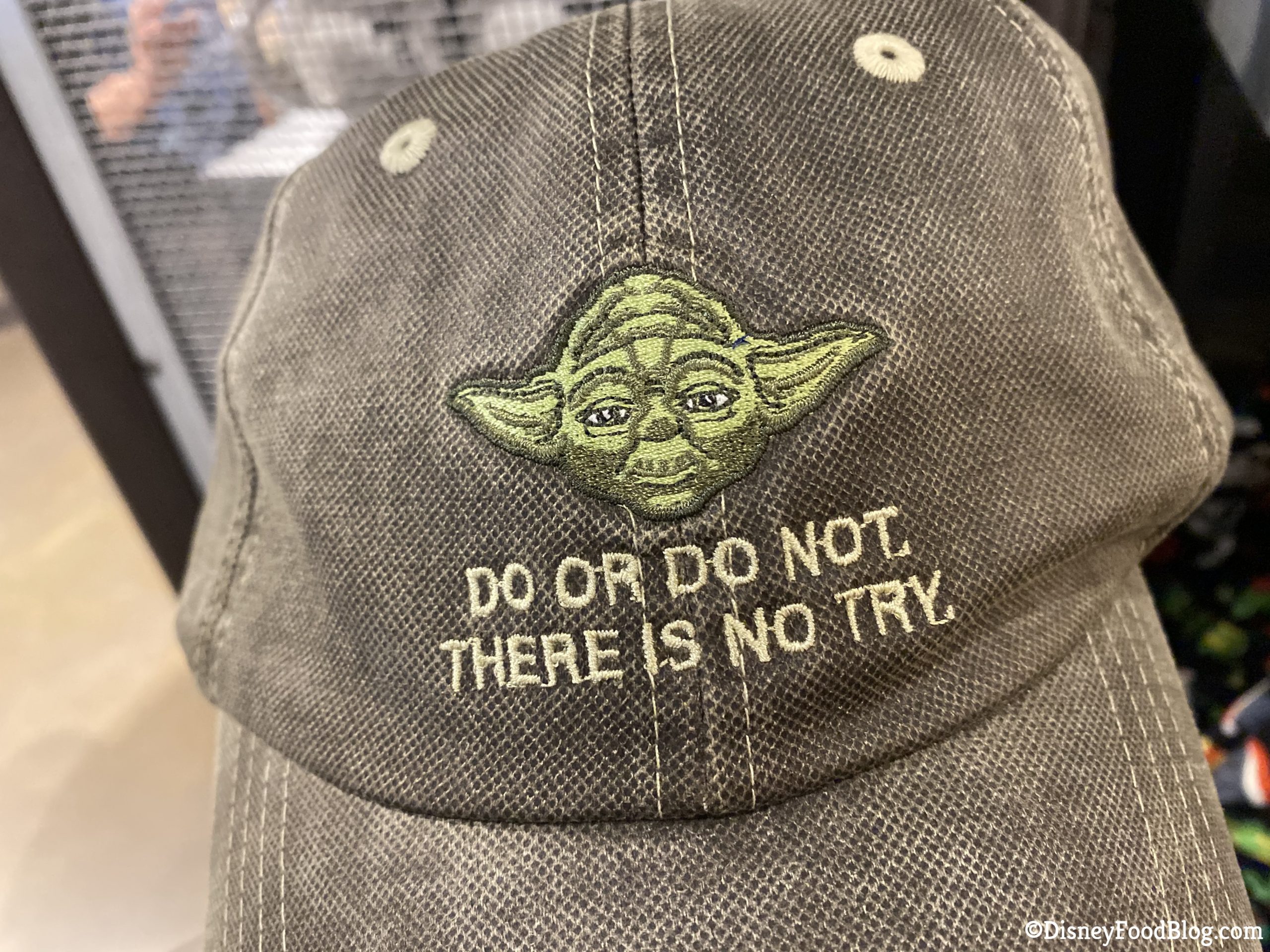 In Tatooine Traders, we spotted a couple new Star Wars hats! The first one we saw was the Yoda Baseball Cap. This hat features Yoda himself and perhaps his most famous quote, “Do or do not, there is no try.”